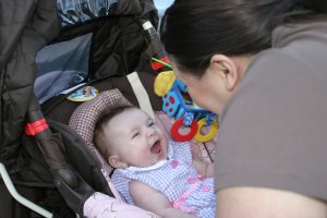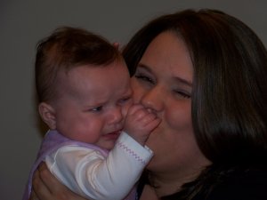 On Friday February 6th, Abigail went in for her 4 month check up and from what the doctor says… “She’s Perfect” (music to a mother and father’s ears). Its so wonderful to see that she is healthy and so very happy. Her current measurements put her weight at 15 pounds and 10 ounces and her length at 25 inches! She is getting big! She had her vaccinations as well and let me tell you… it was hard as a mom not to reach out and smack the nurse who made her cry. But that’s not rational or appropriate! She screamed for both shots, but once she was dressed again and back in her stroller with her blanky and binky… life was good. Shes been a bit crabby and feverish, but thats normal.