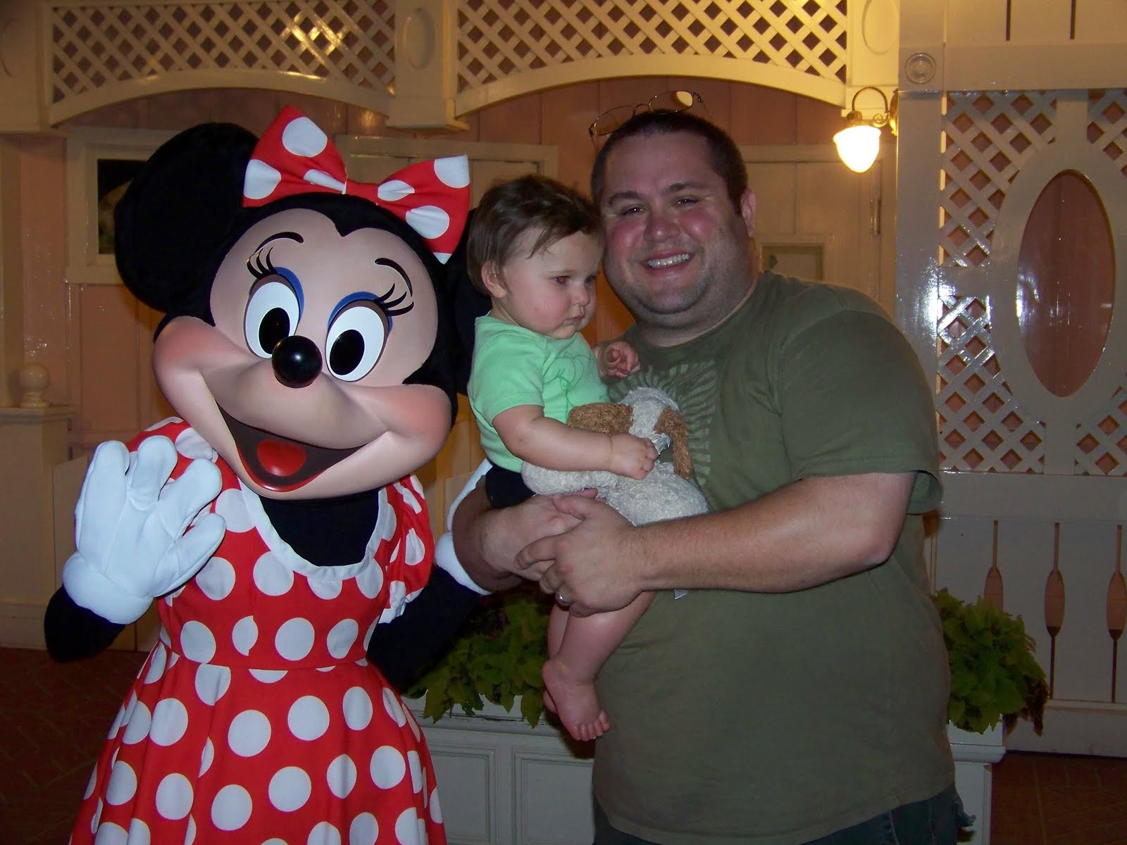 Right after we got off the Winnie the Pooh ride, we spotted Tigger and Rabbit visiting with lots of visitor to the park. Shaun and I would have liked to had pictures taken with both of them but the line was extremely long. However, as we stood there Abby caught a glimpse of Tigger and seemed very excited! Her reaction was priceless and it almost seemed as if she was trying to talk with him!