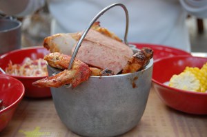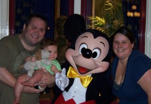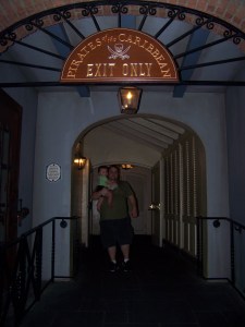 After the excitement of her first ride, we decided to just walk around a bit more and enjoy one of our favorite places. My hope was to get Abby to fall asleep for a bit and eventually she did. Of course she looked cute doing that too! Luckily for us she fell asleep just before our dinner reservation, which allowed us to eat for a while before she woke up again. Dinner was at the Big Thunder BBQ, which for me was very exciting. The Big Thunder ranch used to have a BBQ restaurant when I was a little girl and the last time we had the chance to eat there, well… if you dont know the story about Snow White’s wishing well, as me some time. The BBQ was excellent! ALl of our food came out in metal buckets and our drinks were served in mason jars. During our dinner there was also a show which was pretty cute. Abby woke up when it started and she seemed to get a kick out of it.