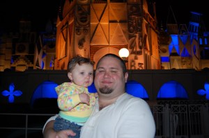 After chatting for a bit, we had the moment to watch fireworks together and both girls seemed to love it. Some of the fireowrks were a little too bright but aside from that they seemed to be pretty engrossed with it. After the fireworks we parted ways and decided to get onto one last ride before we left. We got onto Small World in no time and that seemed to be, well… I think the jury is still out on that one for Abby. Singing, dancing little dolls at 10pm might have been a bit much, but she didnt complain. Just sat here and took it all in!