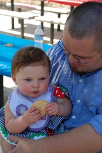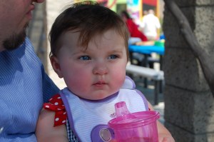 We decided to go for the afternoon and evening to meet up with Emerson, Jackie and their kids as they were celebrating Emily’s First Birthday! We took our time getting there, actually we were forced to. Traffic was a nightmare and on the way Abby started to have a meltdown because mommy wasn’t thinking and put her Doggy out of reach. Boy does she love that Doggy! Luckily we were able to get off of the freeway and get Doggy and a bottle for her. I thought that would help her to fall asleep for the rest of the ride, but instead… she chattered the rest of the way there which left her a little cranky.