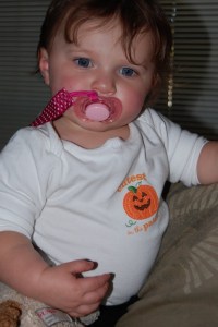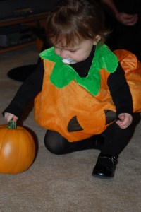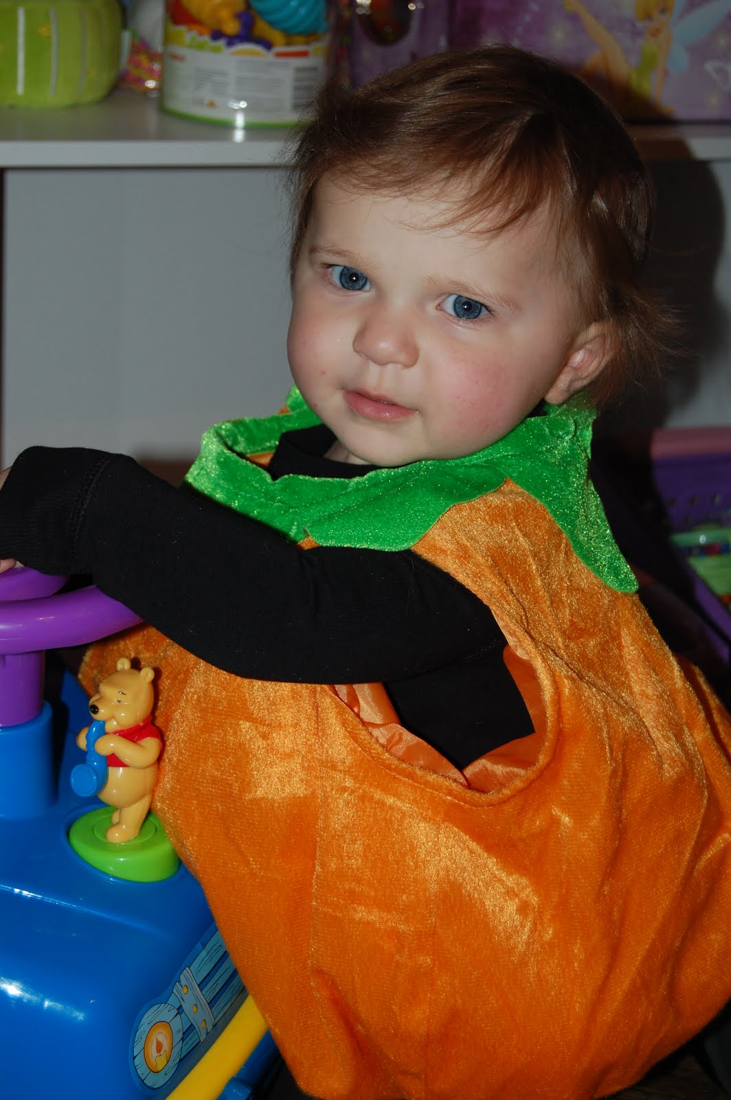 Once she was up from her nap, Abby was ready to get dressed for Halloween. It was the first time we have dressed her in a costume and thought it would be fitting to have her dress as a pumpkin. She looked adorable!