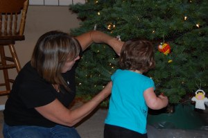 This year was different! Boy oh boy was it different and in a very wonderful way. The weekend following Thanksgiving we went over to Grandpa Patrick and Nana Fiona’s house to help decorate their Christmas Tree. Abby was a bit overwhelmed at first but got right into the spirit of tree decorating moments later. She definitely helped put a few ornaments on the tree, but then decided to help and remove them too. Oh well, she had a blast and Shaun and I enjoyed watching her. I am sure we snickered a bit as our beautiful little girl helped to be a somewhat counter-productive.
