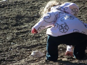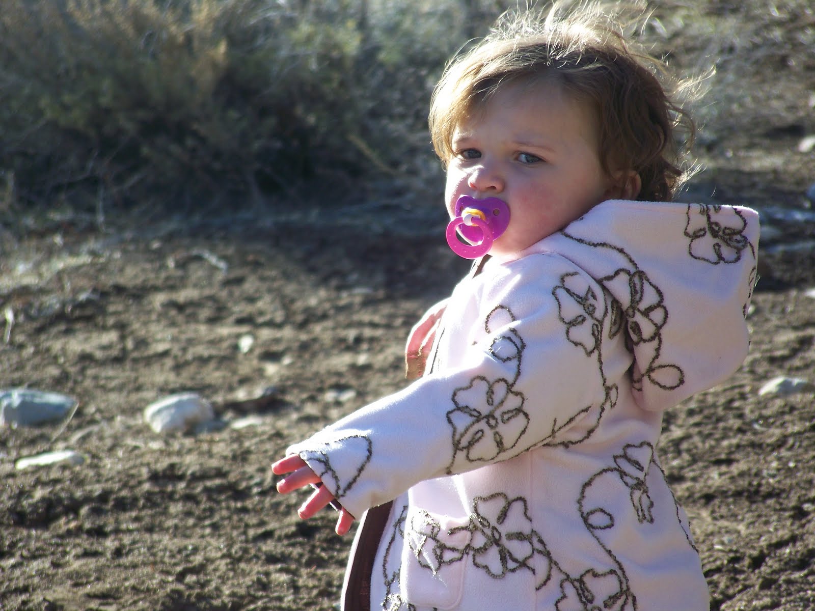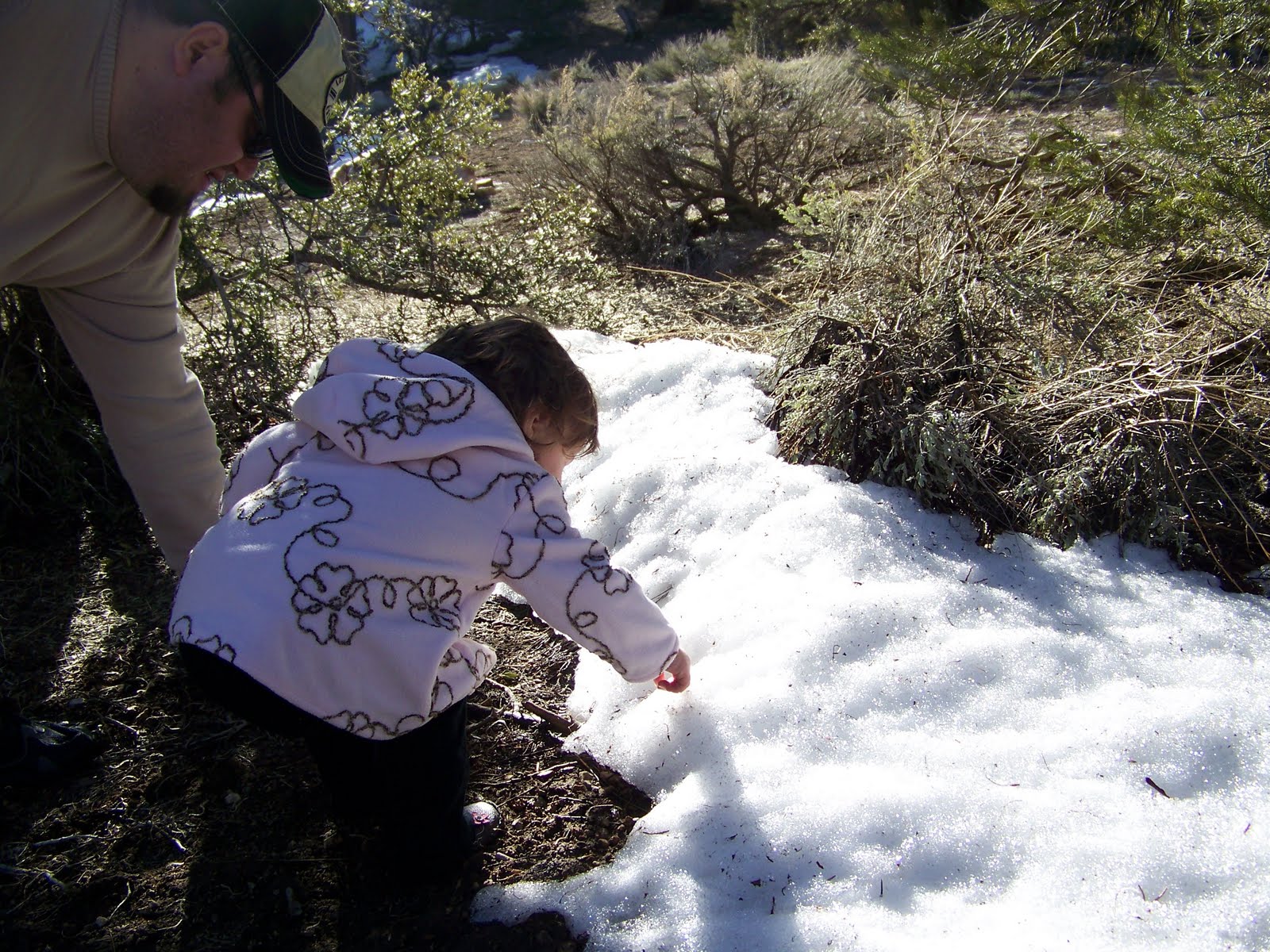 Before actually heading home, we wanted to stop and find a spot where Abby could play in the snow. We stopped at a small trail head and got Abby out of the car ready to play. She was a little wary about the white stuff, at first, but she adjusted quickly. After picking up and thrwing some snow and maiking her first attempts at walking in it, Abby soon found that playing with the dirt all around us was even more fun then the snow. Before I could do anything, she was picking up handfuls and throwing them around. Most of the time though she just let it slide out of her hand as though she was testing the direction of the wind. After some good play time, it as time to pack up and go. Abby wasn’t too filthy, but a bath was definitely on the agenda when we got home!