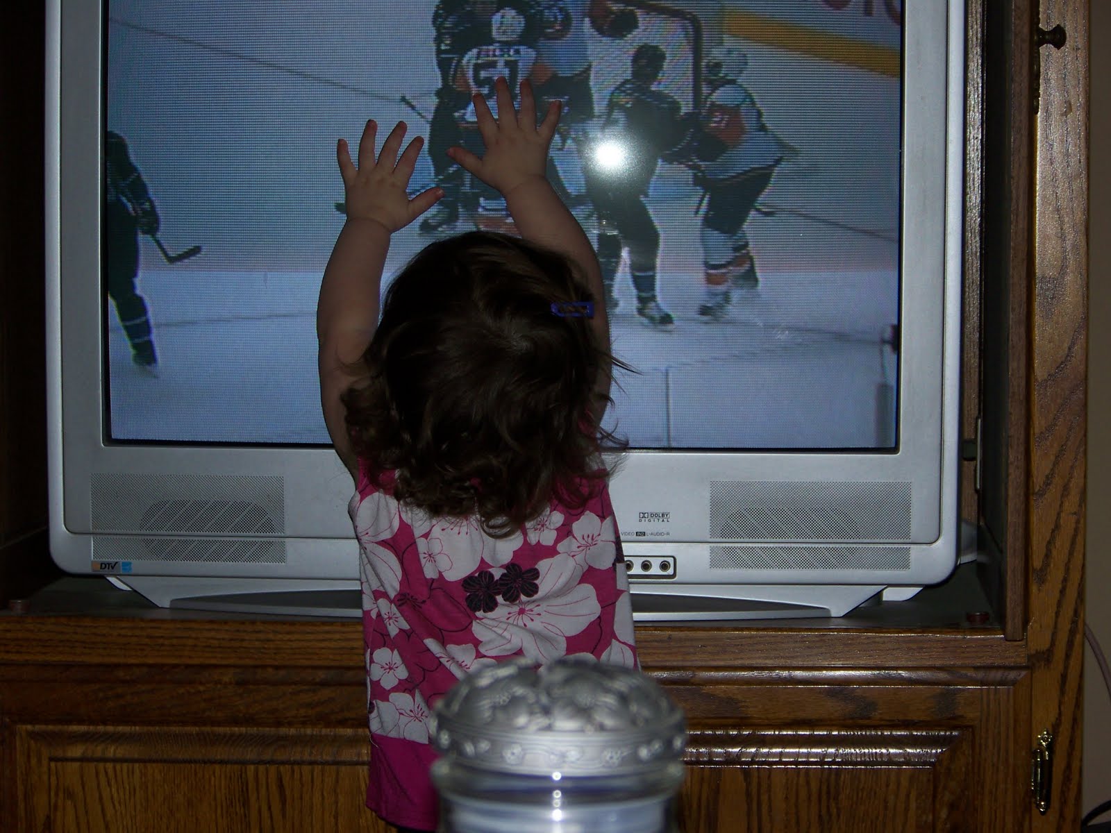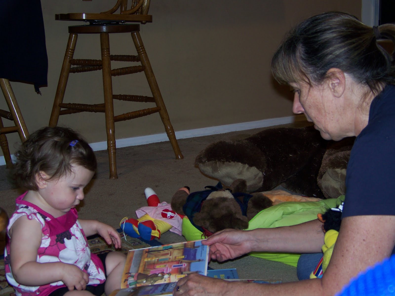 Abby, as always, had a wonderful time playing with her big bear, sleeping bag and new Minnie Mouse toy. The Minnie Mouse toy was actually one that belonged to her Aunt Brittany and she loves it. Nana Fiona also picked out some books that belonged to Uncle James and Aunt Brittany and they had a fun time sitting together and reading. Don’t worry though, Abby still enjoyed the hockey game too and it appeared as though she wanted to join in a few times. You will see what mean! All in all it was a nice, quiet Saturday.