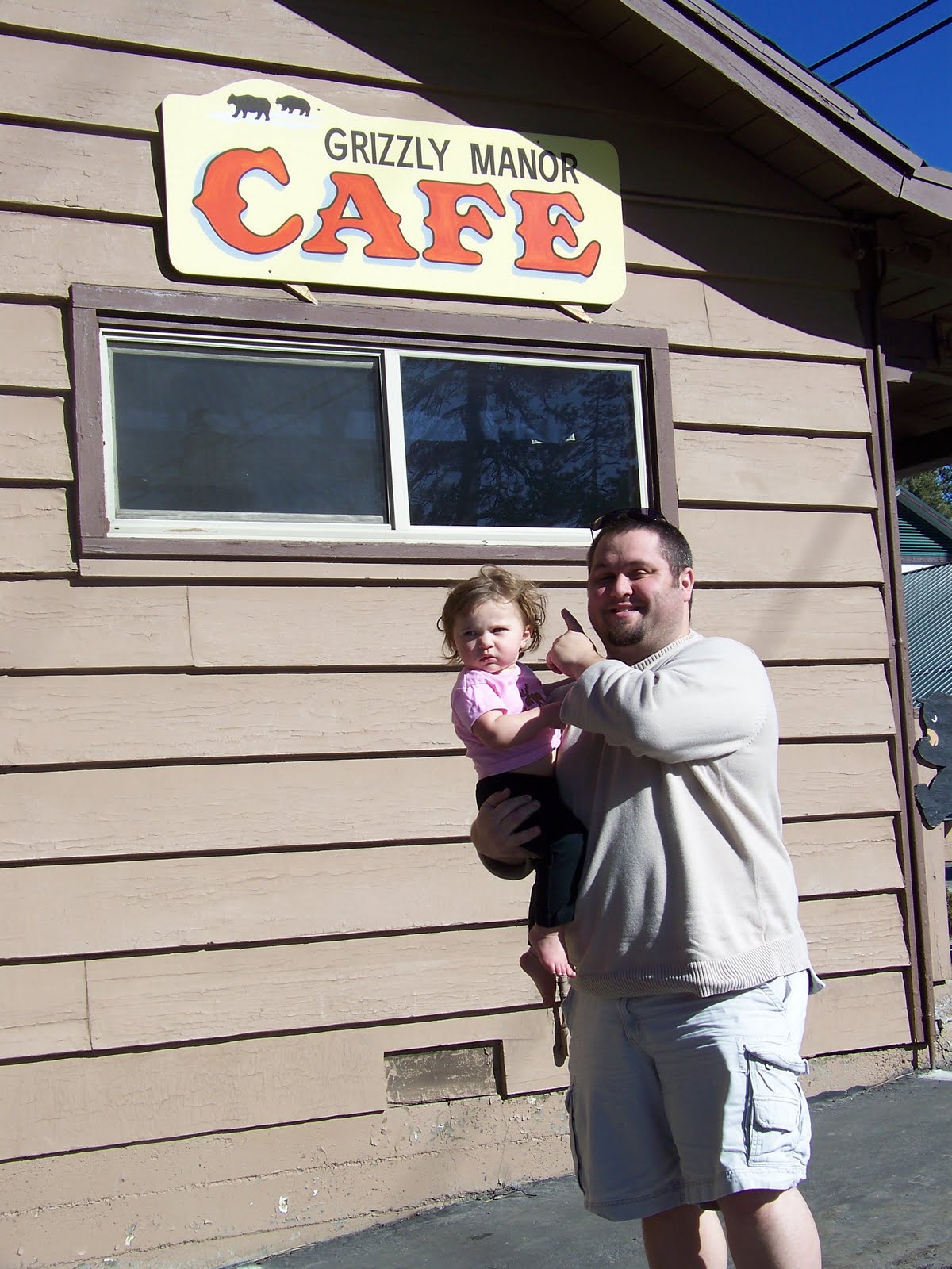 As Abby woke up, Shaun decided to show me a family favorite, the Grizzly Manor. He went there often as a kid and the Wharton family still goes when they are up there. If I remember correctly Auntie Brittany just went not too long ago with friends! After we stopped for a picture, we continued on our way and drove around the lake and started to make our way back home. Abby was just a tad cranky but some string cheese seemed to due the trick. Just don’t bother her while she is eating!