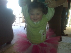 After doing some shopping with Auntie Jillian, we took her home and then headed off to pick up Grandma early from work to do a little shopping as well. We went to two great baby and kids places, Natural Baby Company and Before and After. At the Natural Baby company Abby found a new pair of sandals for the spring and summer. I had been looking for some maternity pants, but I couldn’t justify spending $100 on pants I would only wear for another 3 or 4 months. After that we headed to Before and After which is a maternity and baby clothing store. I struck out there as well, but once again we found Abby something great! A cute little tutu for her to dance around and play in. What made it even better was that one of the dance teachers that Jillian’s works with at the studio made it! We had to support her! Abby liked it a lot and when it came time to head out for dinner, did not want to take it off.