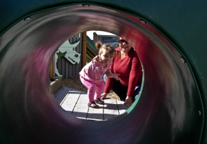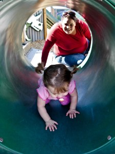After the tubes we headed off to the swings, Abby’s favorite thing at the park. Mommy pushed while Grandpa took pictures. Abby made it clear she was enjoying herself by saying “WEEEE” the entire time. With each swing, Abby sang another happy “WEEE!’.