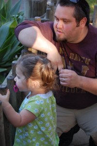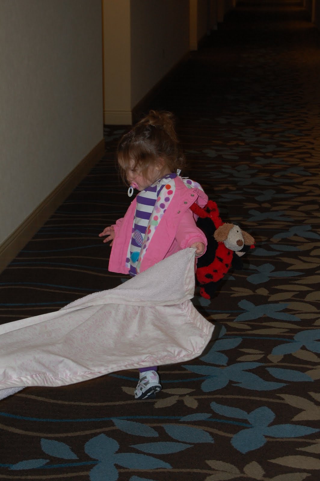 After a great night we came back to ouor hotel room to find my dad relaxing in a chair, Ellie snuggled on his chest and Abby passed out on her bed. She had not napped all day, so when my parents bathed her and set her in bed to watch cartoons, they literally watched her fade into a deep sleep and literally fall over. My dad caught a picture of her… what an angel.