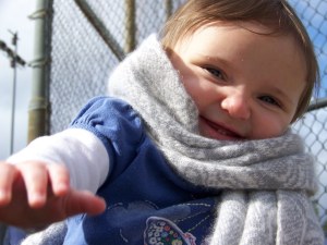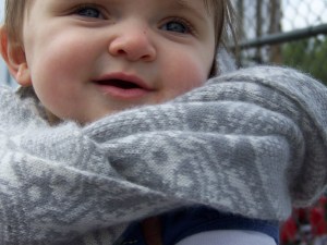 We had another great afternoon at the Pierce College baseball field watching Uncle James play baseball. Today it was cool, with clouds rolling in bringing what is supposed to be one heck of a storm. Despite the clouds and the threat of rain, the girls had a great time playing with Grandpa and Nana. Abby climbed trees with Grandpas help and showed us all of her lovely faces, including one with a smile. Ellie stayed pretty quiet and snuggled with Nana; watching James play. Fun, fun, fun!