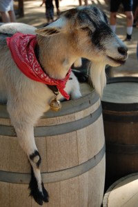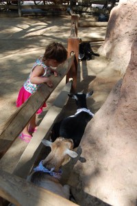 After Pirates we headed over to the Haunted Mansion. Ellie stayed behind with Grandma and Grandpa Taylor after falling back to sleep in her stroller. Abby was excited to go on, but you could tell there was a bit of hesitation. The section of the ride in the elevator bothered her a bit, mostly because people were screaming but she survived and enjoyed the rest of the ride. After the Mansion it was off to Winnie the Pooh and then Jillian and Drisana decided they wanted to ride Splash Mountain. While they waited in line, we headed over to Big Thunder Ranch to see all the barnyard animals. Abby got to meet all of the goats, a cow and a donkey! What excitement. All the while Ellie slept.