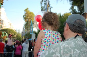 After the parade we hopped onto Matterhorn and then headed for a bite to eat. With full tummies we made our way back to our lockers to change shoes and clothes for the night. On our way back into the park we were able to find ourselves a nice place to watch the fireworks right on Main Street. Abby enjoyed them, when she wasn’t dazed and resting her head on Grandpa’s shoulder. She did perk up when she saw Tinker Bell and Dumbo flying. After the fireworks we took off to ride the Finding Nemo Submarines. This time Grandpa stayed behind with Ellie, who had fallen asleep again and Grandma rode with us. I think this, out of all the rides, was by far Abby’s favorite. When we got off the ride Abby couldn’t stop talking about Nemo and Dory and all of their friends.