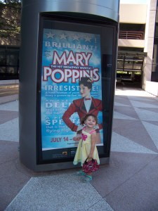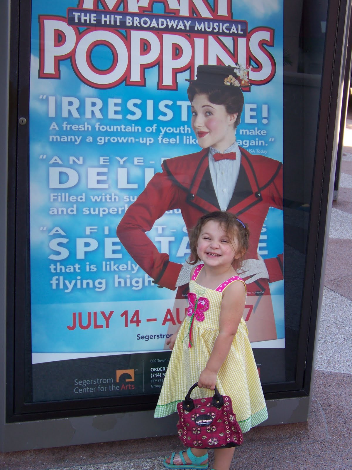 Today we took Grandma Zoe for a surprise birthday trip. What is the surprise you say? Well, we took her to see Mary Poppins The Musical down in Costa Mesa! Not only was this a surprise to Grandma Zoe, it was a great surprise to Abby. Mary Poppins is her favorite movie and the first and only movie that she ever watched all the way through (and still does to this day)