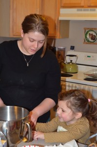 While we were away that day the girls had a blast. Abby and Auntie Jillian made cookies and luckily Grandpa Jerry caught a few great pictures for us! Jillian says Abby was an excellent helper, especially when it came time to clean up the beater!