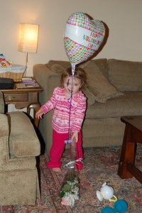 The girls had a wonderful time at the party, playing with “the babies” as Abby calls them. The party took place at the Wolfson home (Jen’s parents) and they have a lovely backyard to play in and explore. Abby and Ellie really enjoyed the swing set and slide, which was surrounded by recycled rubber that the girls thought was the coolest thing ever.
