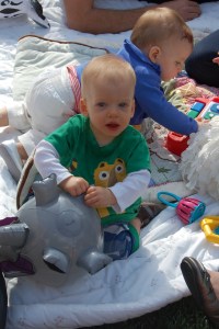 The day was also one of firsts. A first birthday for Bixby and Felicity, Ellie’s first time in a bounce house and Abby’s very first bee sting. Yup, the poor little monkey was stung by a bee! She was crawling around and playing with Ellie when she crawled right over a bee. It hurt, Abby cried but she was a trooper. After about 20 minutes of care, stinger removal,ice and some onions Abby was off and playing again just like nothing had happened. We watched her carefully to make sure that she didn’t have any allergic reaction to the sting, but all seemed just fine.