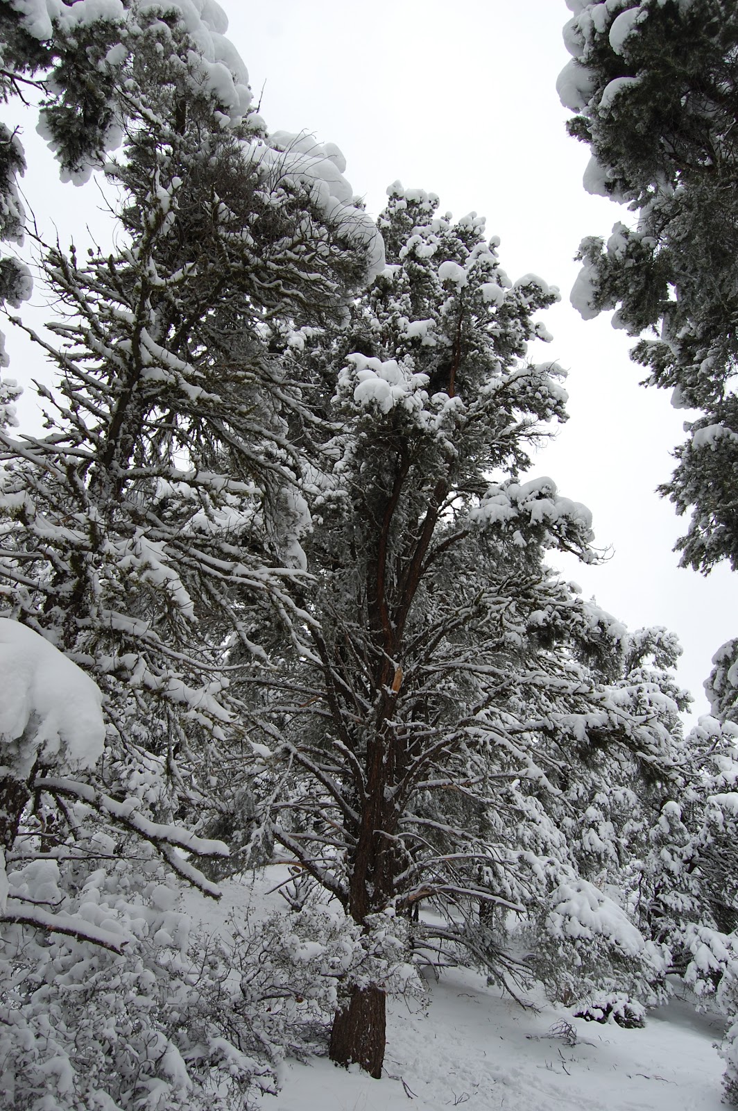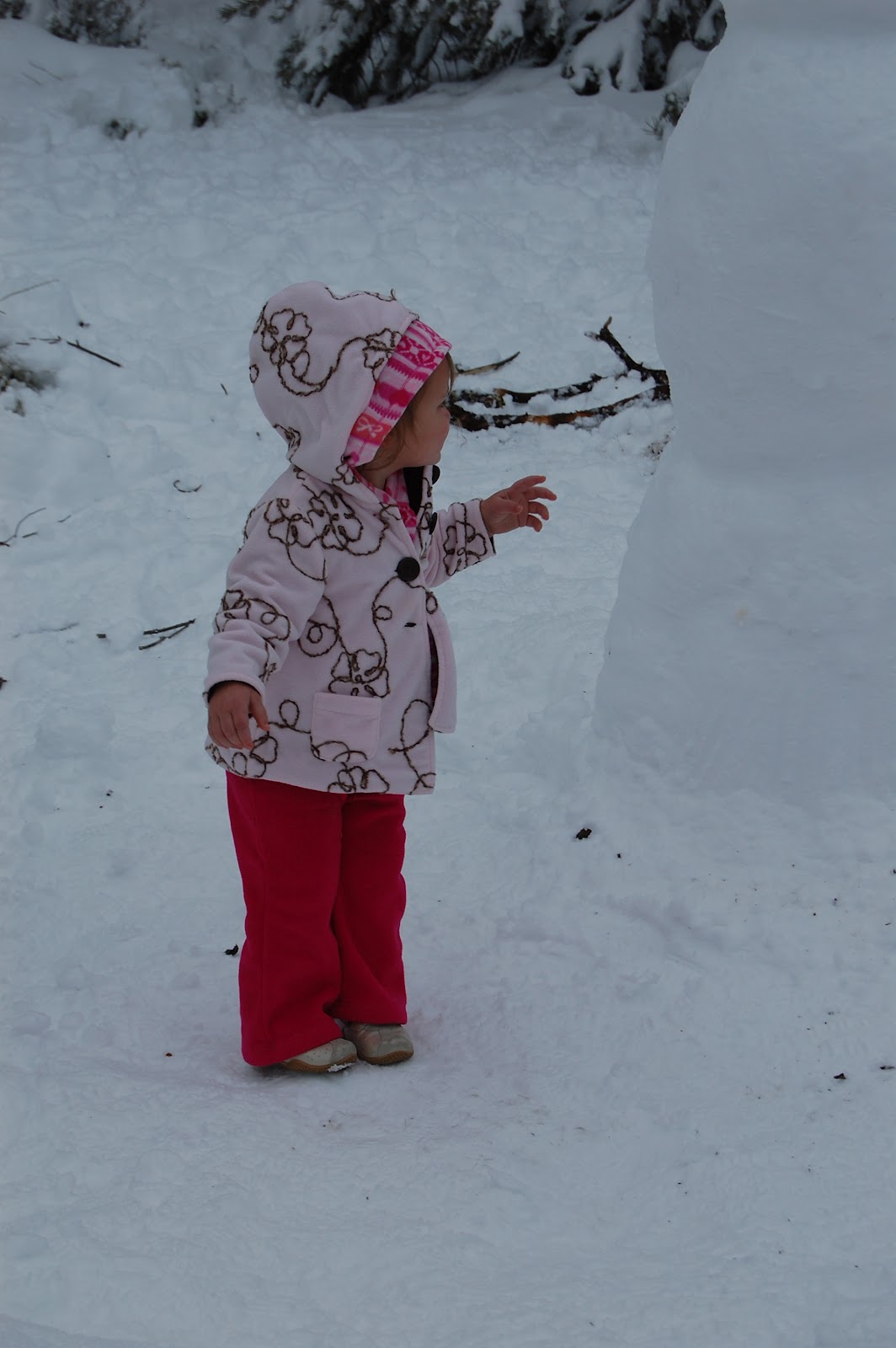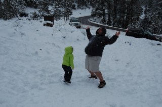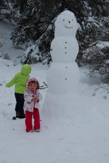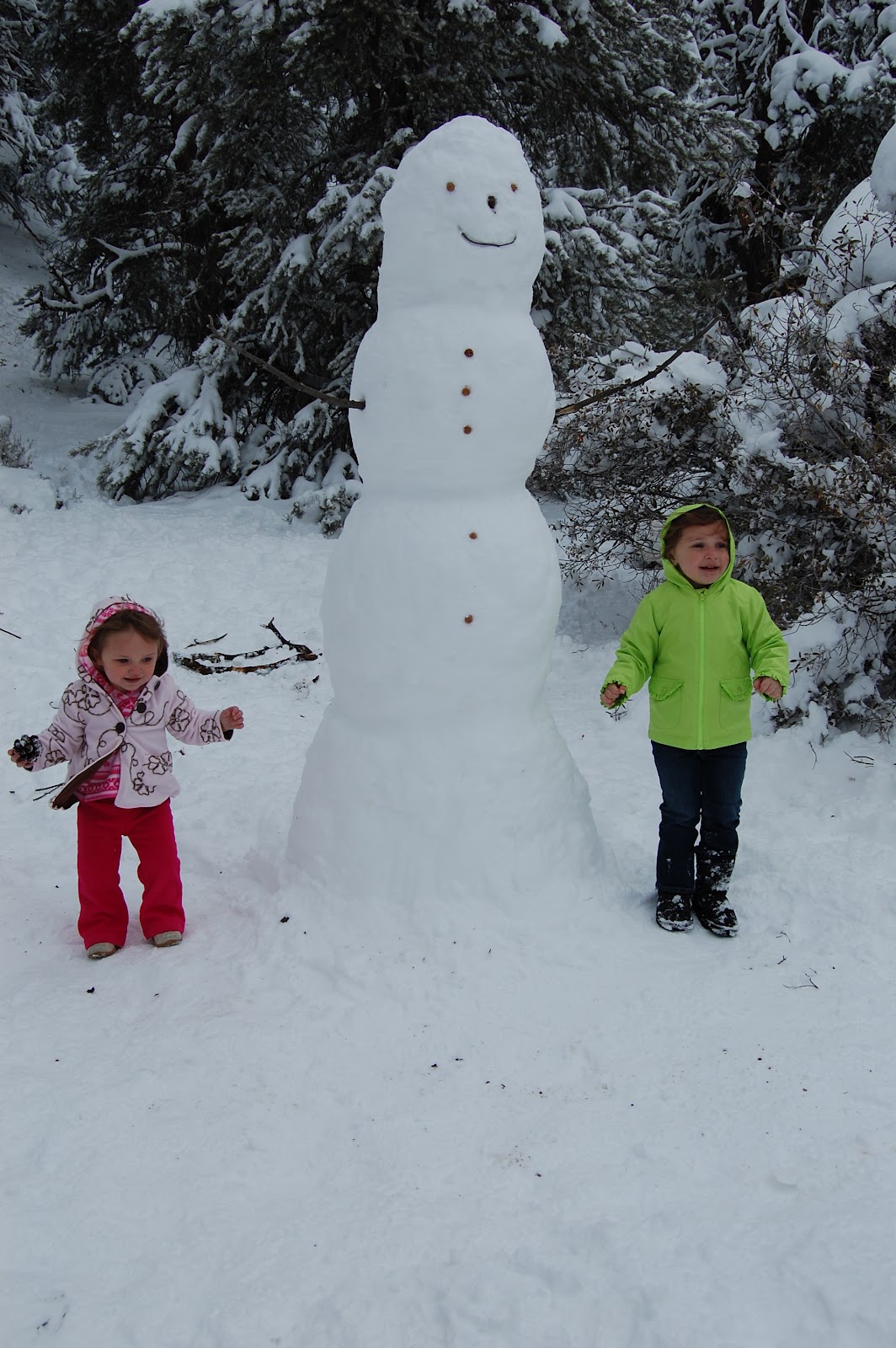 Frazier Park had some snow but it took driving up towards Mt. Pinos before we found enough to play in. Once we found it, there was plenty of it. Our perfect spot already had a snowman too! The girls had a great time. Ellie was in awe of the cold white stuff that surrounded her and Abby jumped right in, trying to add to the snowman!
