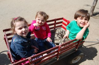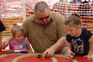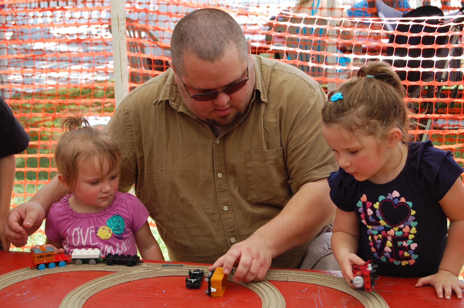 | Shaun and the girls playing with trains. I think daddy had as much fun as the girls. |