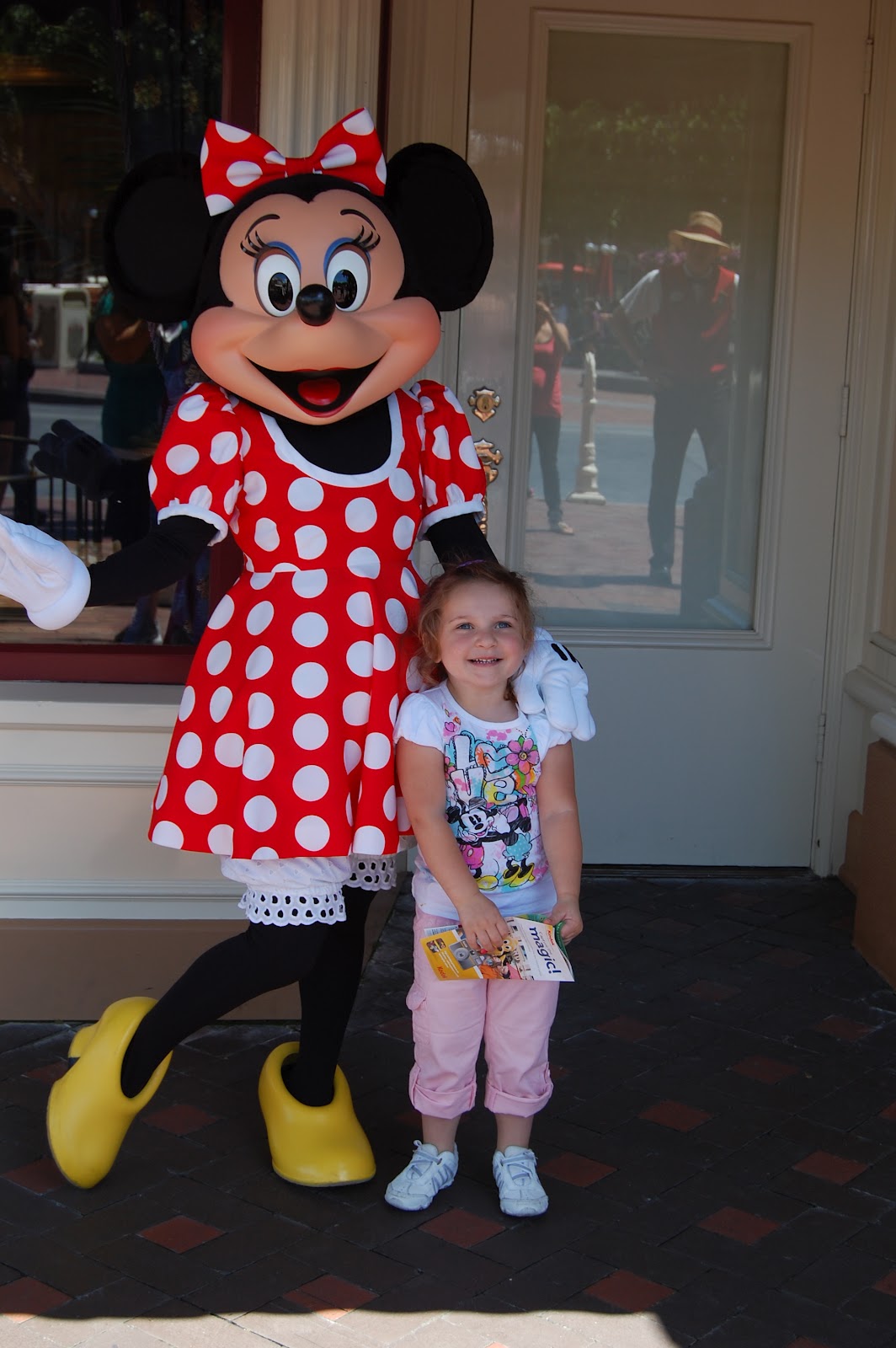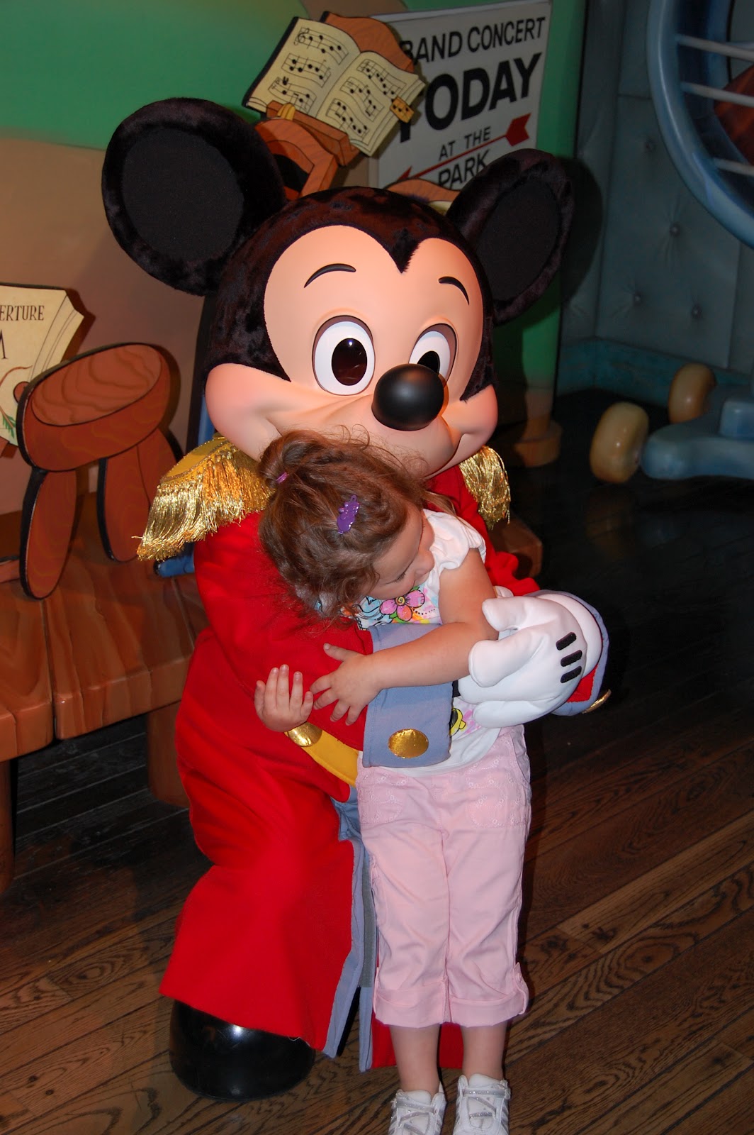 | Abby was very excited to see Mickey Mouse. She practically hopped into his arms to hug him. |