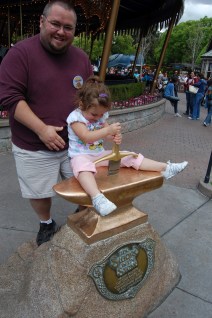 | Trying to pull the sword from the stone. Abby used as many tactics as possible to do it too! |