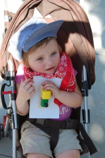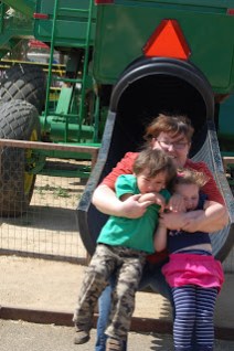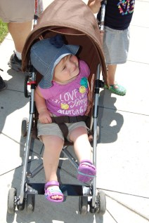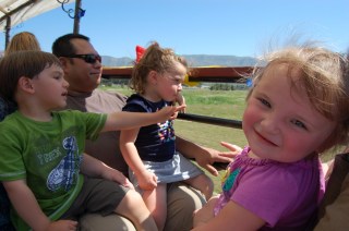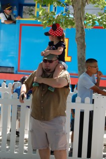 | Abby insisted on sitting with Byron during the train ride. Poor Byron had two hot and sweaty kids sitting on his lap in ninety degree weather. What a trooper! |
