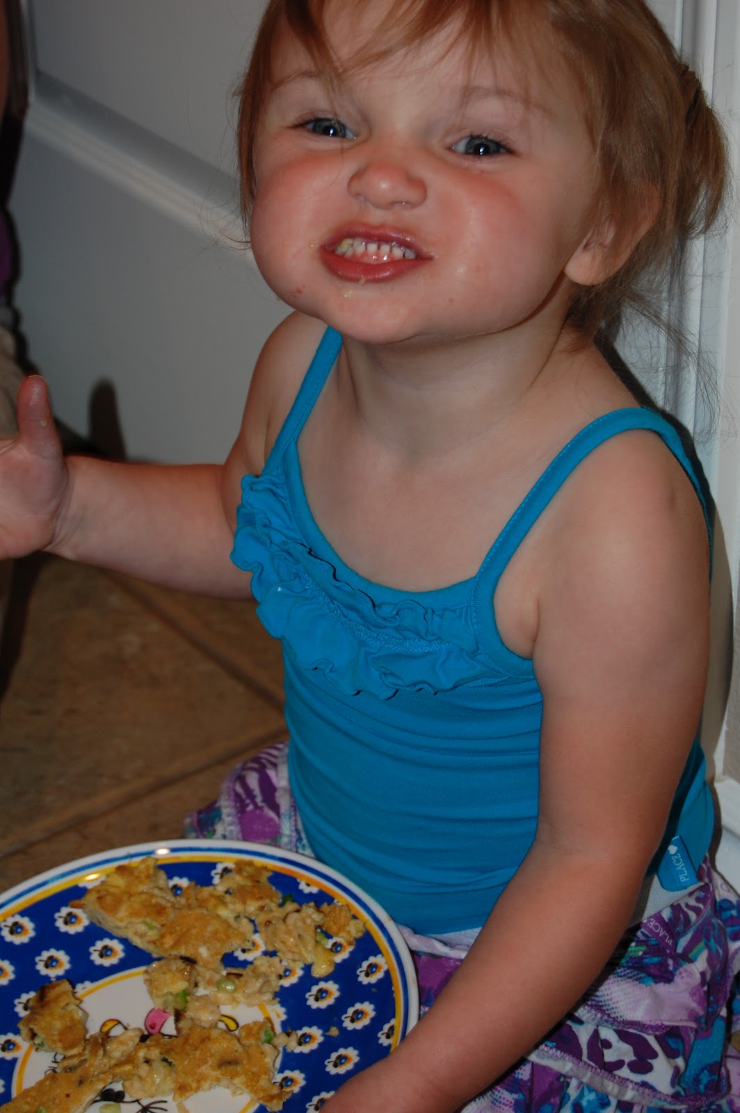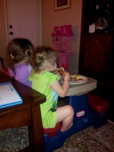 After eggs were done Daddy, despite not feeling up to his, decided to make something that he remembers enjoying as a kid. Matzo Brei! Shaun did a great job with it and while Abby turned her nose up Ellie jumped right in. Go figure! Who would have thought my picky little eater would love it so much.