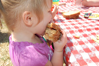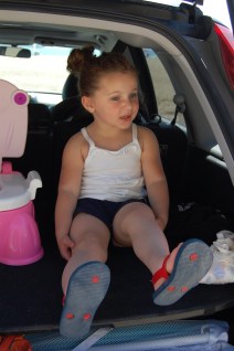 The kids ran themselves out over a course of about 4 hours. I am amazed they stayed awake long enough to drive to the bank! But eventually everyone gave in and passed out on the way home. The day was wonderful. The one and only downside to it? The sunburns. We discovered the hard way that our sun block was well past its expiration date. Luckily the girls just had red noses but mommy didn’t fair quite as well. You live and you learn. At least I know what I will be buying tomorrow!