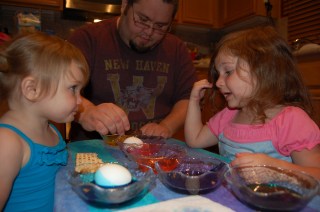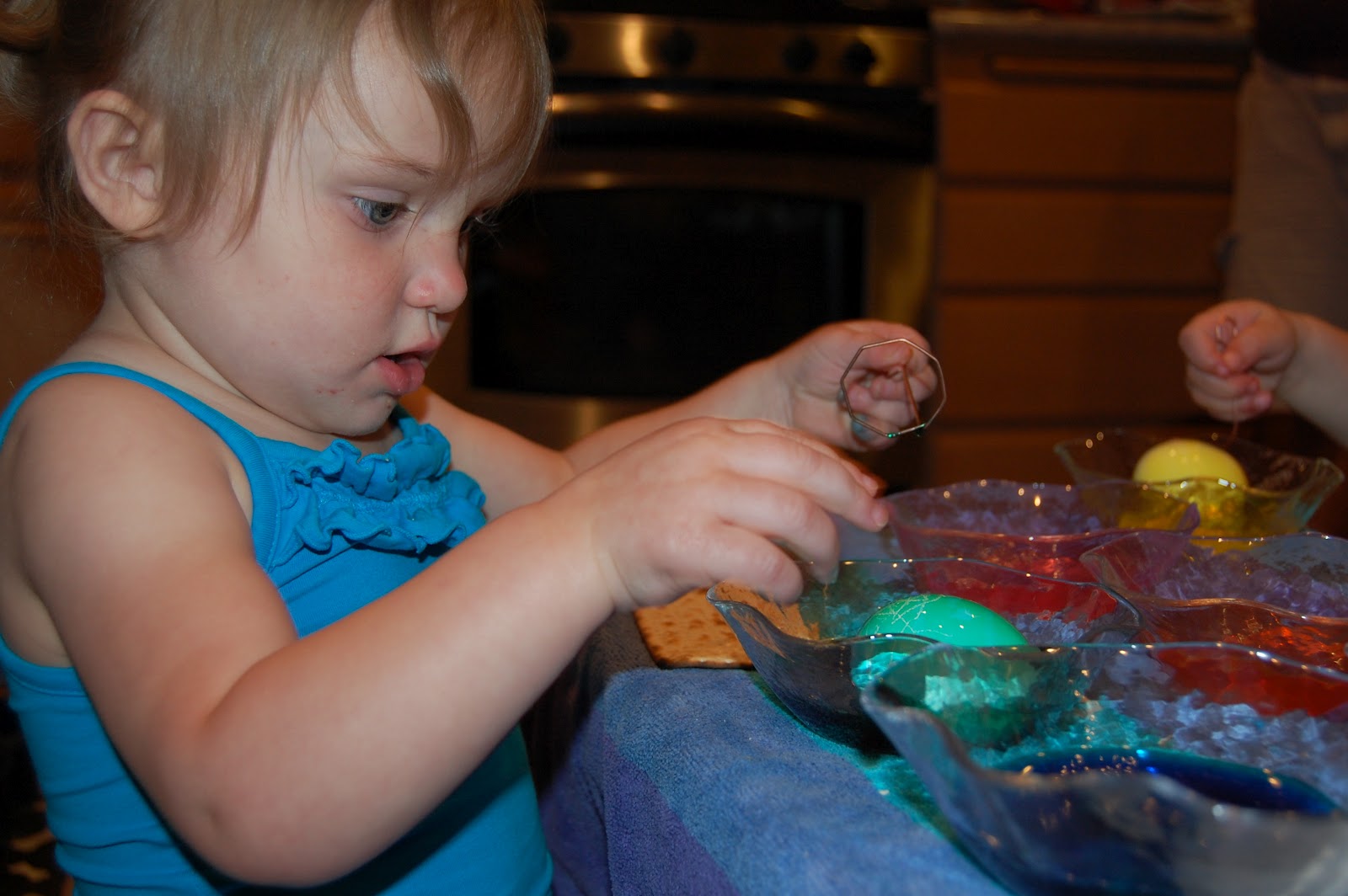 After dying some eggs and enjoying some food in honor of Passover for our Jewish friends, we all headed to bed to wait for the Easter Bunny to come. Ellie gets excited at the mention of the Easter Bunny just like Abby, but I cant honestly say she understands it all yet. I guess we will see in the morning!