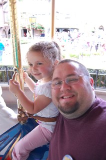 | On the Carousel with Daddy. Finally got a big smile out of her and a picture with Daddy too! |