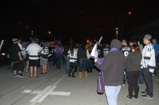 The crowd was pretty big considering the time and the location. It was very impromptu so even the airport police were overwhelmed. The next thing we knew police cars with K-9 units began to arrive. Like everyone around us kept saying… “Geez, you would think we were Lakers fans”. The police were ok with us once they realized that we weren’t there to cause trouble. When the plane landed, the players headed to their cars and drove past a long line of excited fans. Most waved and smiled as they made their way through the crowd. Former players and staff members like Bernie Nichols stopped and gave high fives and shook hands with fans. While no one stopped for pictures or autographs, the smiles on their faces showed us how they appreciated the support. It was a fun night and it was great to be a part of Kings history.