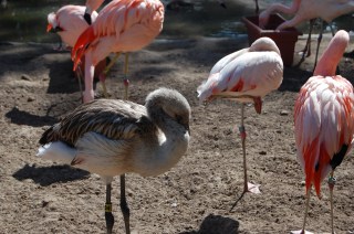 A young Flamingo that has yet to get his pink feathers.