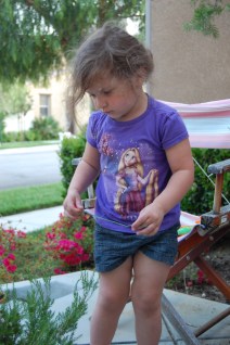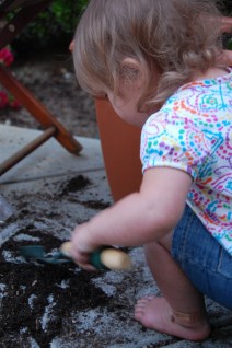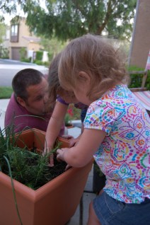 After a very busy say yesterday, Shaun and I decided to play it low key. Our garden on the front porch had pretty much died, due to the heat of last summer and some pretty bad neglect after that.  SO we headed on over to Lowe’s and bought some new plants.  This year we decided to plant some strawberries, more basil, thyme, cilantro, mint, and we were able to save and replant our chives.  We also put four pots of lavender out as well.  After a nap, which allowed me to clean down the porch, the girls helped us pot our new plants. It wasn’t much but it was the perfect end to another wonderful weekend.