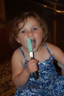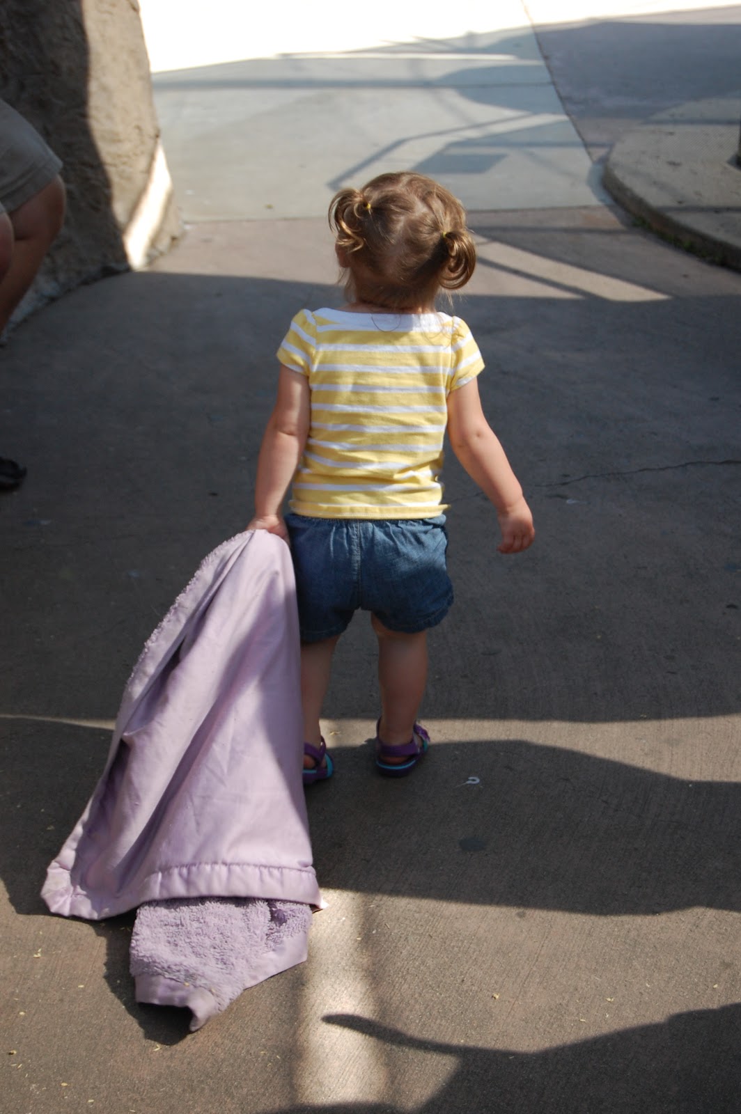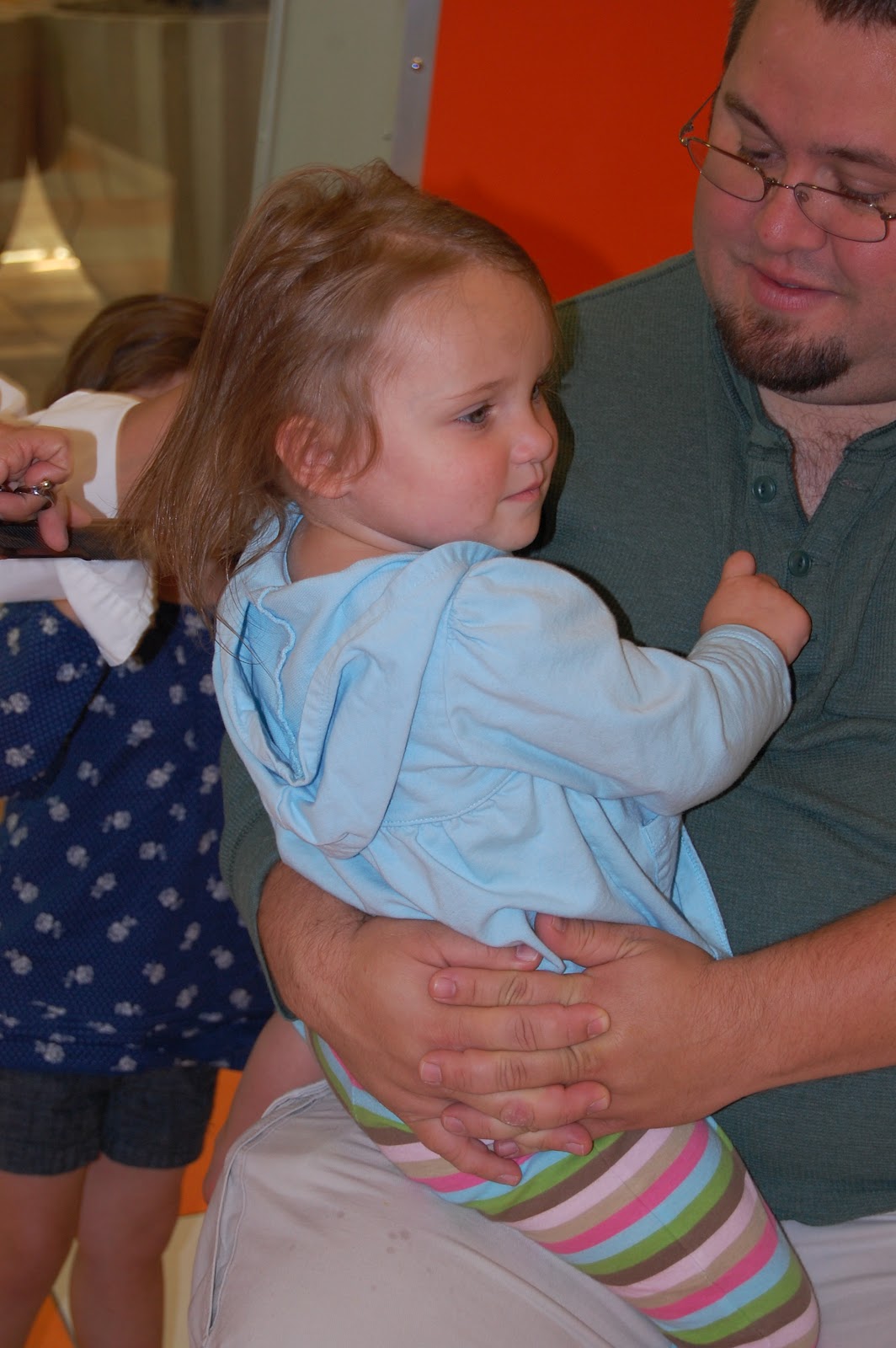 This little girl started to get a little aggressive with Ellie and just as I started to intervene Ellie took charge. Ellie followed her around with her little finger out, pointing at her. She then started speaking to her in a loud voice, not yelling but firm. It was mostly gibberish but you could tell that Ellie meant business. This went on for a good two or three minutes, Ellie waving her finger at the little girl telling her what for in her own little language. Shaun and I laughed hysterically. Whatever she said worked because finally the little girl gave in and let Ellie play with them. From that point on they played happily for a good half hour before it was time to go. Its really good to know that Ellie can handle it on her own and be so cute while doing so!