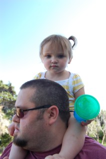 Hitching a ride with Daddy.