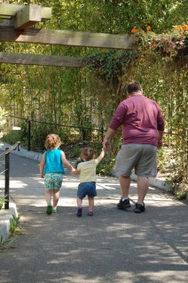 Shaun walking with his girls up to see the elephants.