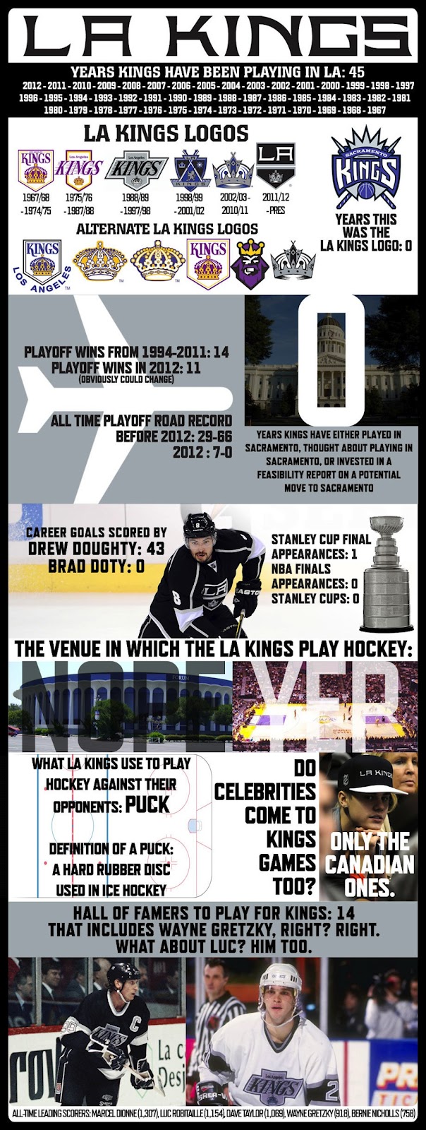 During the playoffs the LA media in all of their intelligence and glory made just a few mistakes.  Like posting the logo on news broadcasts for the Sacramento Kings instead of the LA Kings. They also seem to think that our star defense-man, #8 Drew Doughty is actually named Brad Doty and that one of the star forwards, Anze Kopitar is called Kopidor. Gotta love the media these days.  Learn your sports teams if you intend to report on them! Luckily the Kings PR has created a handy cheat sheet.  Take a look and enjoy!  I know I got a kick out of it!