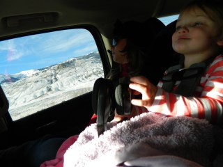 We continued through Lamar Valley, enjoying the snowy landscape and taking in as much as possible. We stopped for a bit of a lunch break and then made our way back to Mammoth. In Mammoth we did a bit of shopping at the General Store (a few snacks and little souvenirs for the girls) and then said goodbye to Yellowstone.