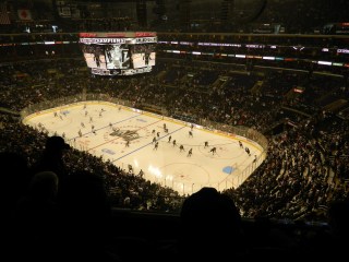 | So excited to see the Stanley Cup banner hanging from the rafters. |