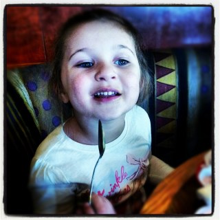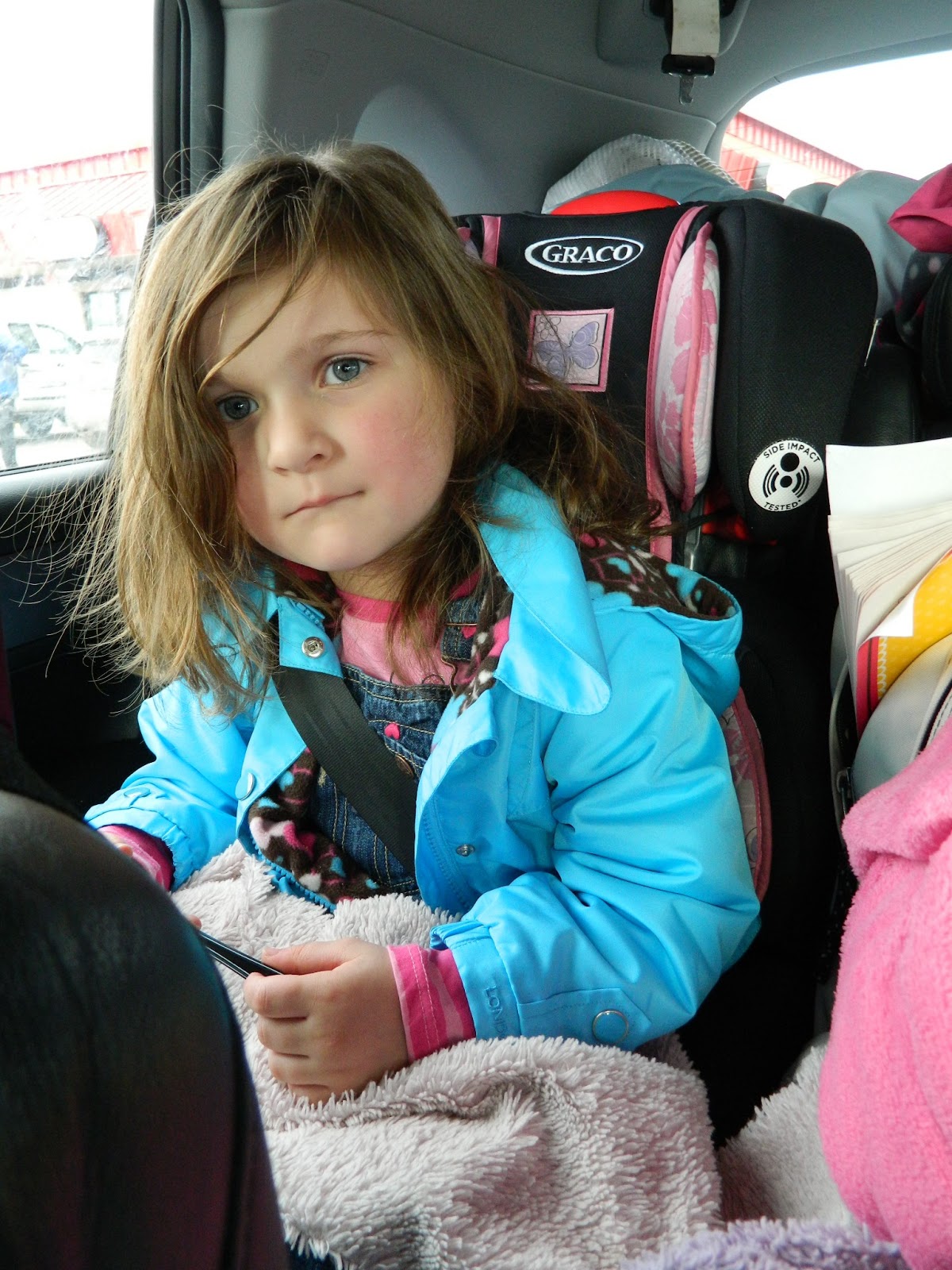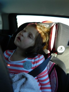 | On the road and almost there. As you can tell the DVD player is keeping Ellie so happy. |