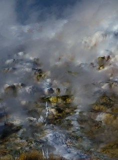 | Steam and frost along Mammoth Terrace. Picture courtesy of Jerry Taylor |