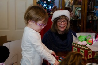 | Opening presents with Auntie Diane. |