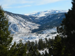 | Overlook from Upper Mammoth Terrace looking down at the Gardner River |
