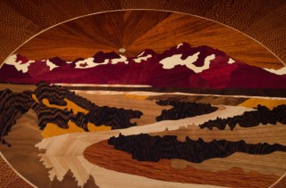 | Beautiful carved table top with the Teton range. Love this one! |