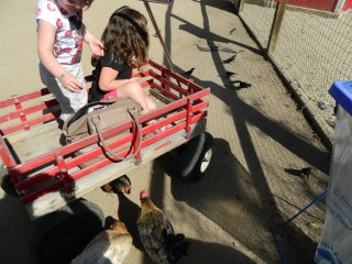 | Time to feed the chickens and make Daddy uncomfortable! |