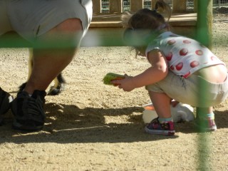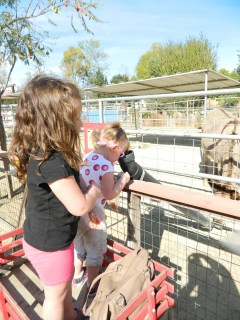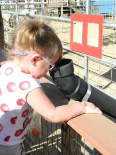 | Ellie really likes to watch the carrots bounce down the tube to the animals. |