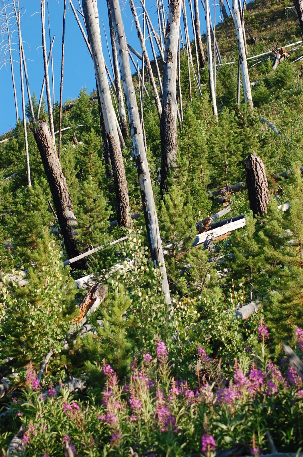 From Canyon Village we drove through Norris and back up to Mammoth. We decided to take one last drive out to Lamar and through Blacktail Plateau. Maybe, just maybe we would see a bear or a wolf. But alas, we did not. The late afternoon drive through Blacktail was beautiful. The sunlight lit up the remaining wildflowers and remnant burned trees from the fire of 1988. It was a wonderful last picture to have before getting ready to head home.