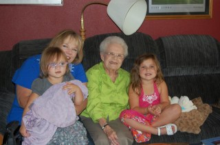 Great Grandma Laura, Grandma Denise, Abby and Ellie. Three generations of family in one place.