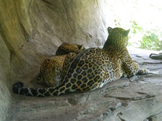At the rain forests edge are the Jaguars. Mama was standing watch as her three cubs napped, although she kept dozing off too. I know how you feel Mama Jaguar!