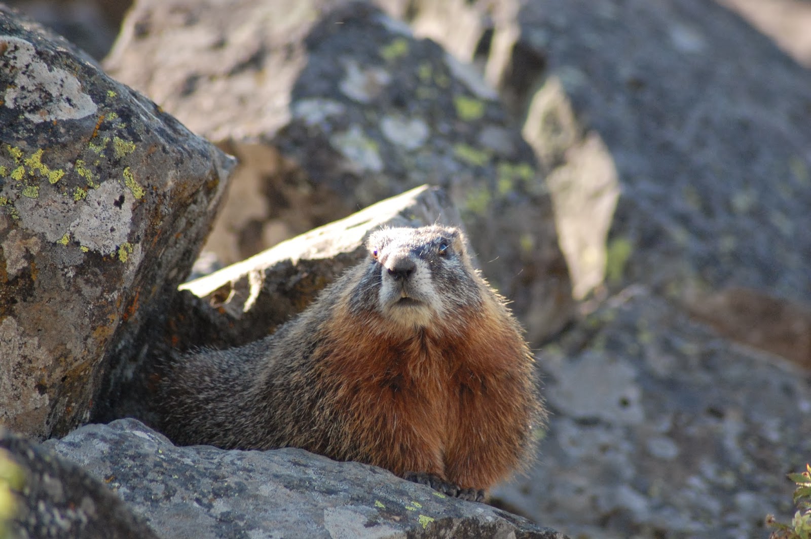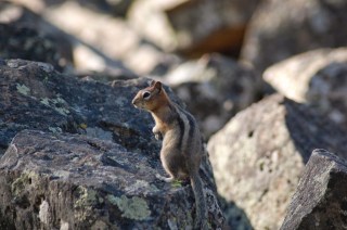 I think this little chipmunk was hoping to steal a berry from the marmot.
