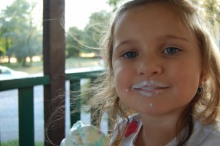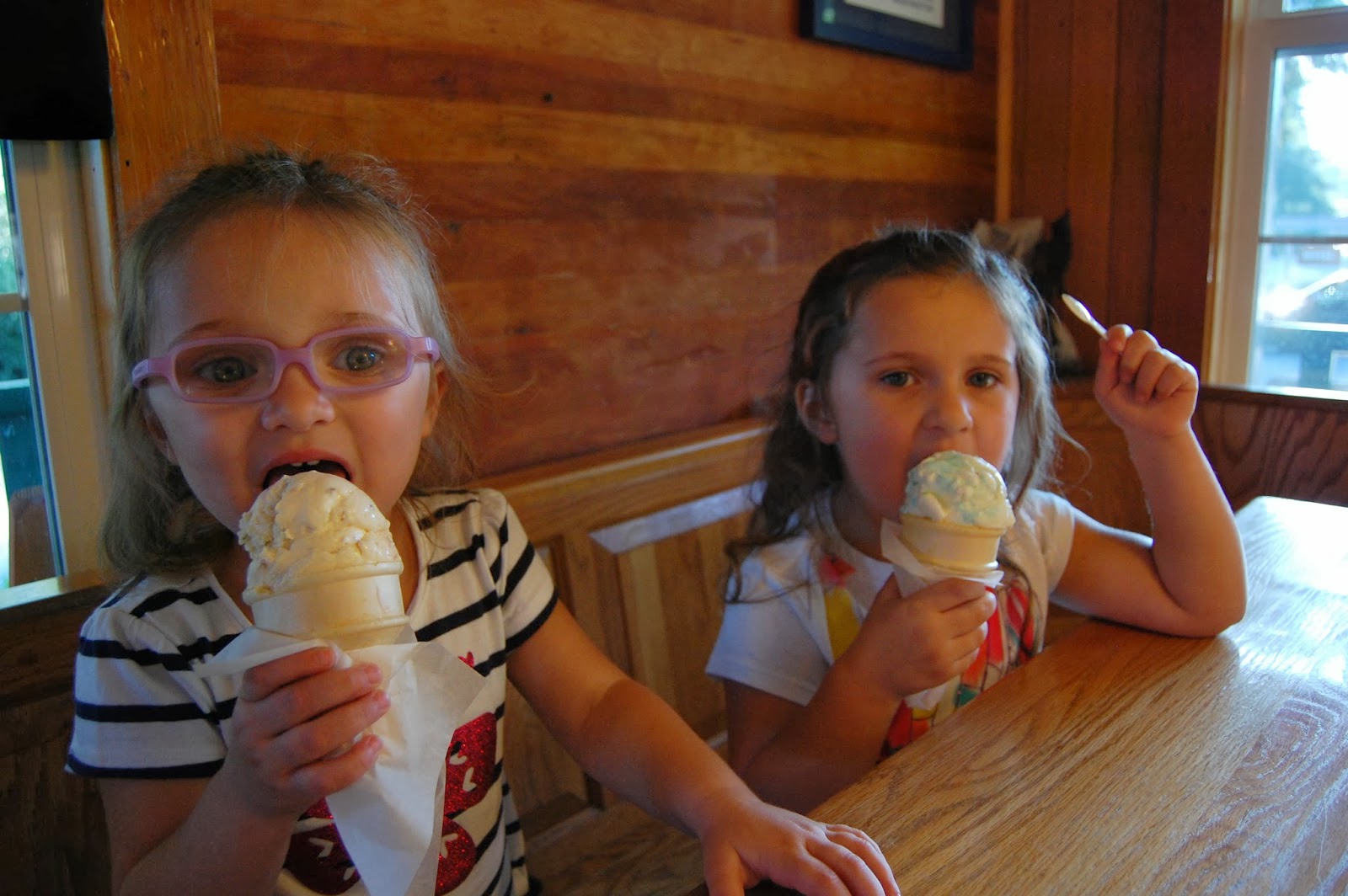 We sat out on their big wrap around porch and watched the cars go by. We ate our ice cream in the late afternoon sun as a small breeze rustled through the trees. Some leaves started to fall and it was the first time I had noticed an ever so slight change in the weather. You could almost feel it, fall was starting to creep in. The breeze started warm but had a crisp feel underneath it all. I love the summer but as I sat there, I couldn’t help feel excited about our first fall in Washington with the girls. We sat there taking it all in and happily eating our ice cream. After that, we had two very happy and tuckered out kiddos who passed out on the way home.